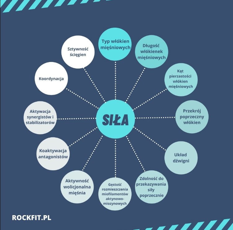 Powyższy diagram przedstawia kilkanaście czynników wpływających na siłę. Wiele z nich jest związanych ze zmianami strukturalnymi, które pozostaną z nami na dłużej, niż w przypadku adaptacji fizjologicznych. Dla pełnego zrozumienia wpływu tych czynników na poziom generowanej siły potrzebny jest ich szerszy opis w tym kontekście.